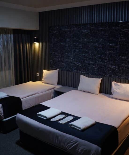 Koza Millenyum Hotel & Spa’nın geniş ve huzurlu seçeneği olan Aile Odası, sevdiklerinizle birlikte konforlu bir konaklama deneyimi yaşamanız için tasarlandı. 30 m² kullanım alanına sahip odamızda; bir adet çift kişilik (duble) yatak ve ek yatak düzeni, yüksek hızlı Wi-Fi, klima ve LCD TV gibi tüm modern donanımlar mevcuttur. Ankara Çankaya’nın (GOP) kalbinde, Arjantin ve Filistin Caddesi’ne komşu konumda, ev konforunda bir konaklama sizi bekliyor.