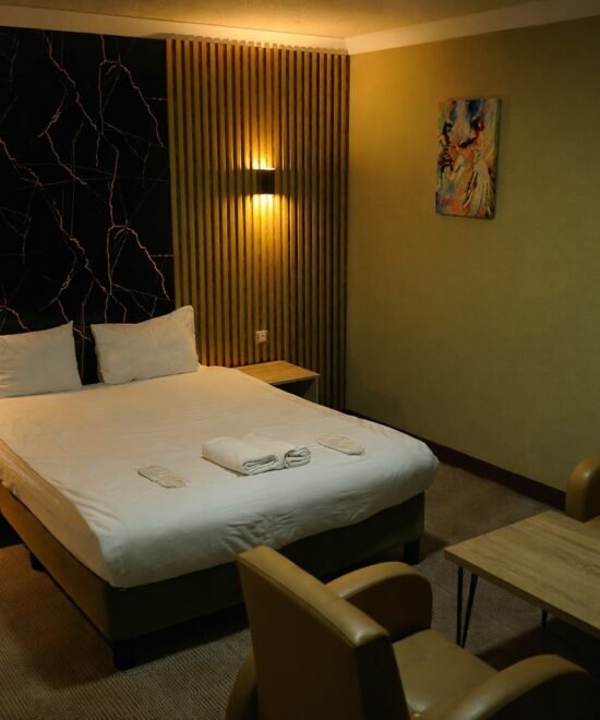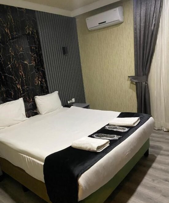 Ankara’nın merkezinde, $30text{ m}^2$ genişliğindeki ferah odamızda modern tasarımı konforla buluşturuyoruz. Şehir manzarasına hakim pencereler, geniş duble yatak ve şık dekorasyon ile hem iş hem de dinlenme amaçlı konaklamalarınız için ideal bir atmosfer sunulmaktadır.