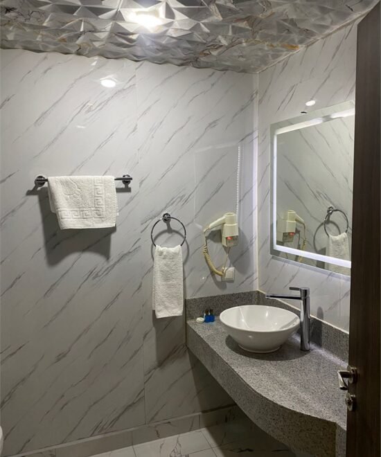 Misafirlerimizin ihtiyaç duyabileceği her ayrıntı düşünülerek hazırlanan odamızda; yüksek hızlı Wi-Fi, merkezi sistem klima, geniş ekran LCD TV ve minibar standart olarak sunulmaktadır. Şık ve modern banyomuzda yer alan buklet malzemeleri ve kaliteli tekstil ürünleri ile kendinizi özel hissedeceksiniz.